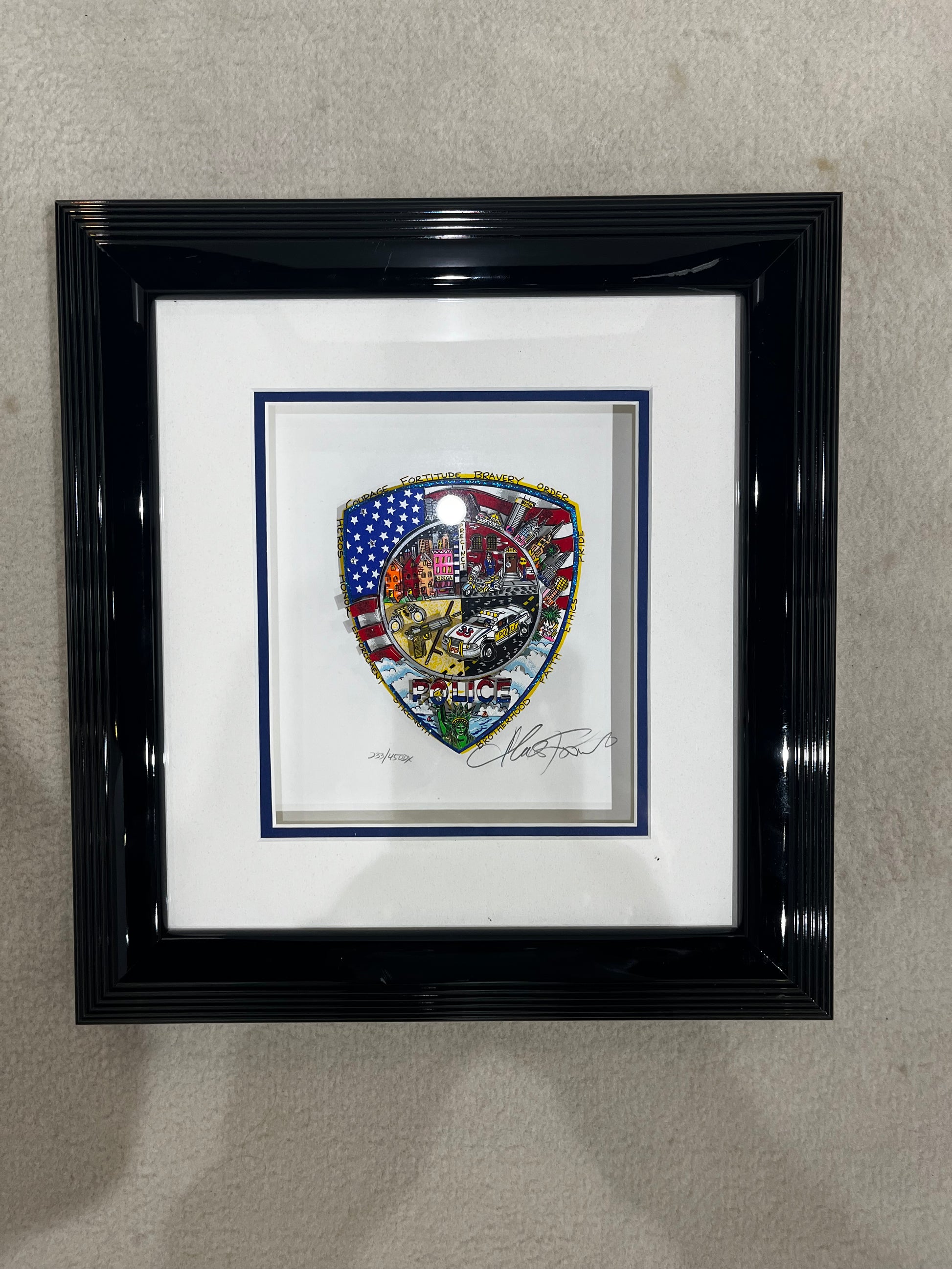 Soon after the events of 9-11 in New York City, Charles Fazzino decided to create a piece of artwork that pays tribute to the incredible work done every day by the first responders who seek to serve and protect us. “I wanted to create something that police men and women could put up and be proud of. That reminds them why they do what they do and that we appreciate them,” said Fazzino.
