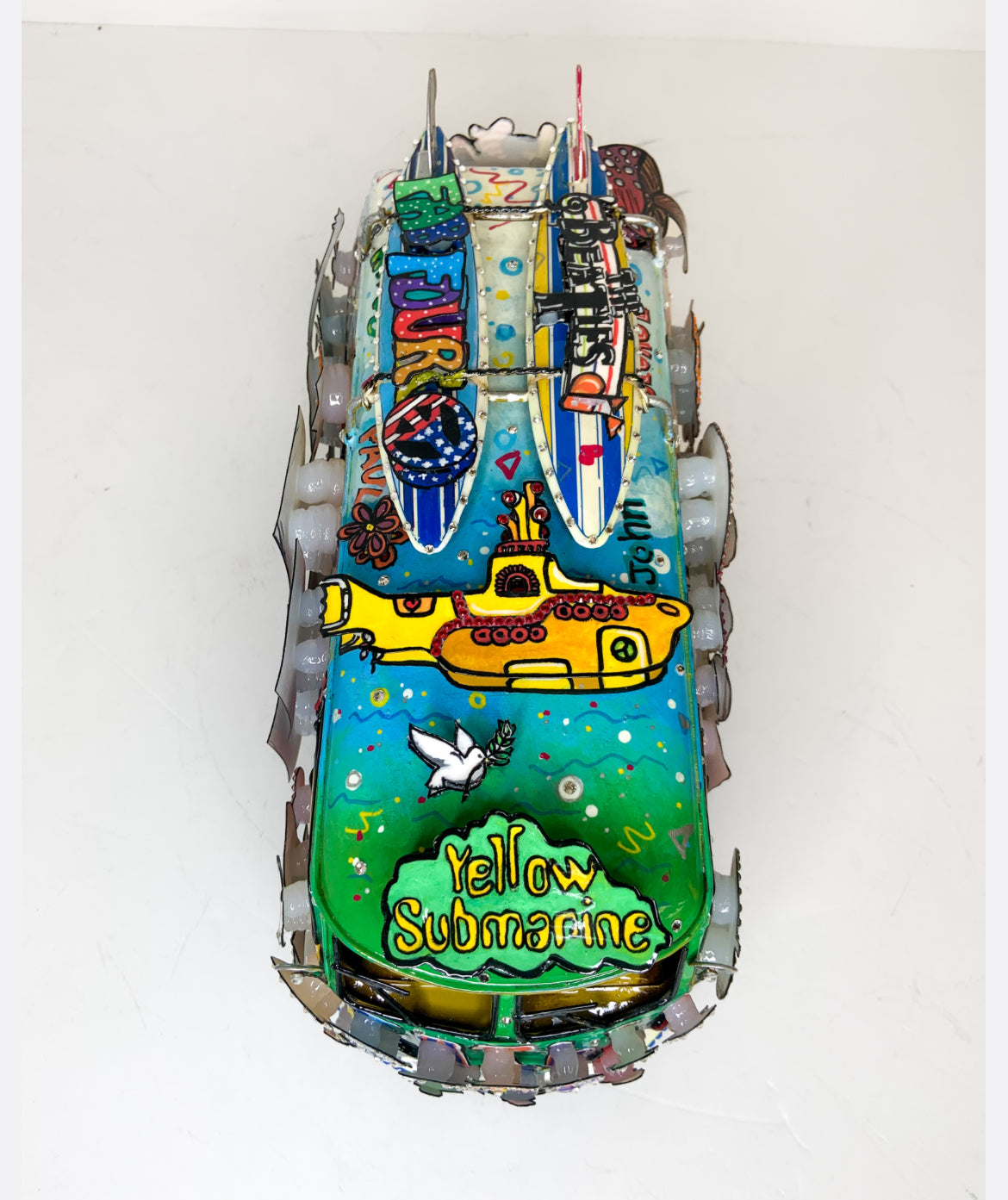Beatles “Greatest Hits” VW Bus Hand Painted 3D Metal Sculpture