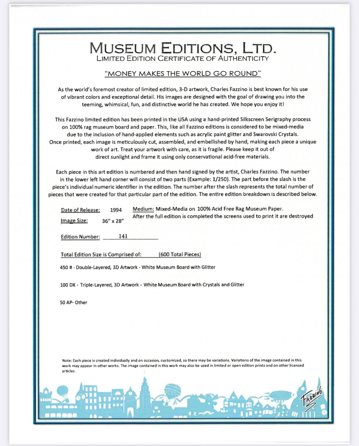 Hand signed by Fazzino